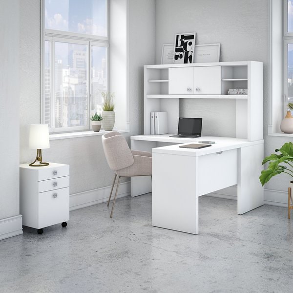 Leading on from the previous point, get rid of old furniture and replace with something new in order to give a fresh look to the office. Even if your office is bold and colourful, a few minimalist pieces will definitely add a bit of a definitive edge to the workplace. For example, the Echo Collection by Kathy Ireland is great because the desks and storage compartments and white, high-quality and minimalist with a modern aesthetic, making the furniture pieces perfect for the office. Plus, shipping is free and there is a free lifetime warranty on all orders, so your items for the office are completely protected.