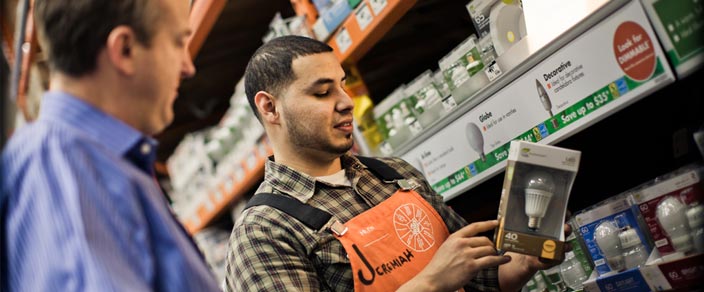 You walk in. Your footsteps echo off the concrete floor. Towers of shelves filled with appliances, fixtures, and tools loom high above you. As you try to remember whether that screw was a Phillips or a flathead, an army of orange aprons starts to surround you. Fear not. They are there to help.