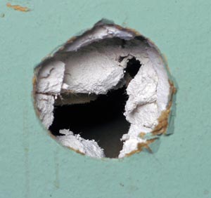 One of our guests, we never knew who, put a hole in the wall of one of our bedrooms – my bedroom. With critical reasoning skills honed by years of higher learning, my roommates decided that since the hole was in my room, it was my problem.