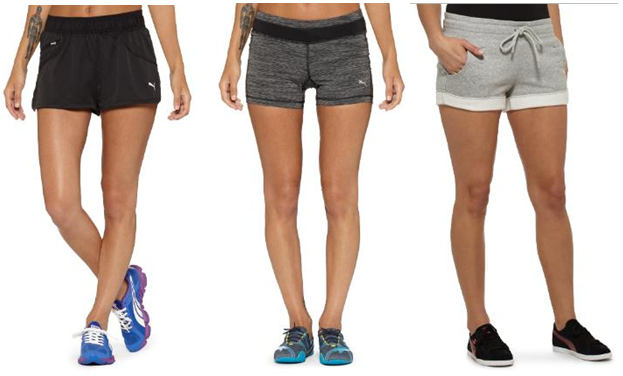 Easy, breezy, beautiful (CoverGirl), the Pure Core Running Shorts (left - $18) are tech-savvy, integrating coolCELL materials to draw sweat away from your skin and anatomically placed airflow features. The curve-hugging tight fit of the Tech Performance Short Tights (center - $18) will attract stares from admiring gym rats while keeping you compact and focused. Made with polyester and a touch of spandex, these tights are certainly tight. PUMA’s Flirty Shorts are hot—protecting your upper thighs from the dense cold of winter. Cute, cool and comfy, you can snag a pair of these for the low price of only $14.40.
